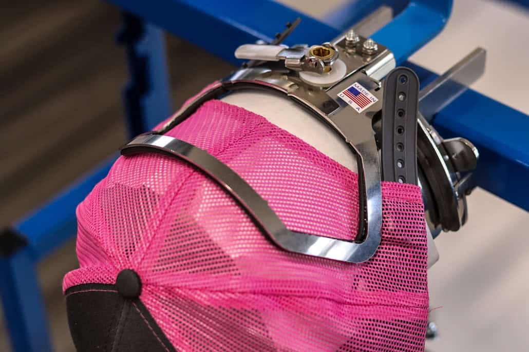 The Compact Clamp for Cap Backs makes short work of the challenging Flex Fit caps. The elastic fabric and sweat band are easily clamped and adjusted for a nice, tight hold. Making embroidery on the back of caps quick and easy.