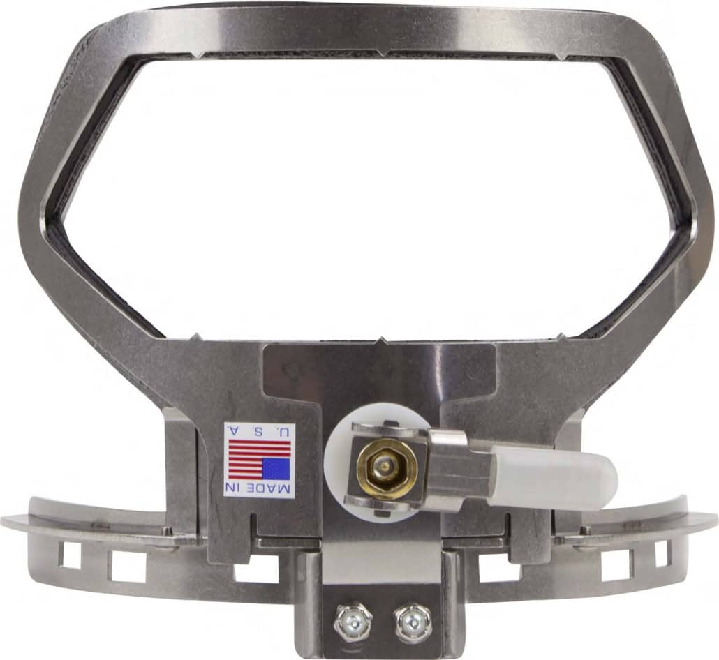 Compact Clamp for Cap Backs is the easiest and fastest way to frame up a cap back. The extra large sewing field with locating points for centering, makes it easy to sew low across the cut out or high on the cap crown for those large design requests. The easy to use patent pending single lever cam locking lever quickly clamps the cap and backing in place and you’re ready to sew. The Compact Cap Back Clamp fits most existing Tajima style drivers. Compact Cap Back & Sides – the easiest and fastest way to frame up a cap